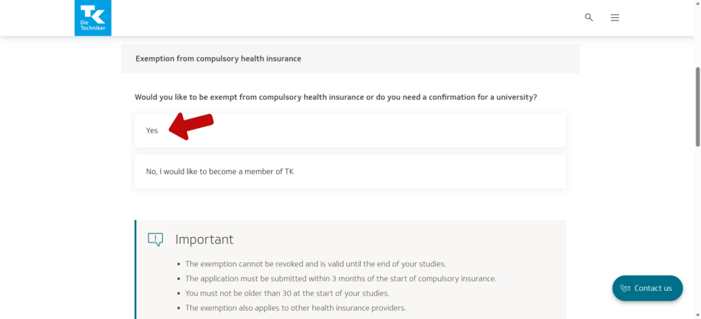 Start by visiting TK’s official page for students. This is where you apply for exemption if you already have private health insurance like MAWISTA. Begin the Online Form