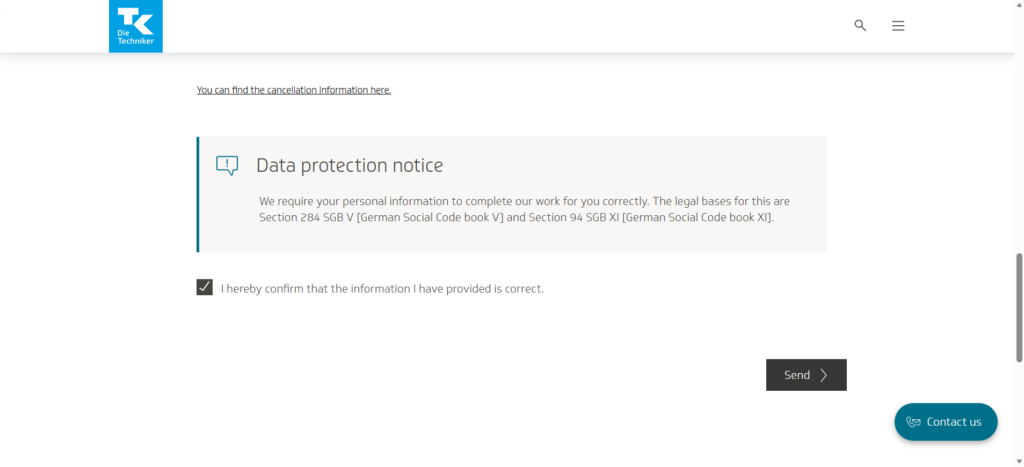 - Review and Send Tick the confirmation box, agree to data protection, and click Send